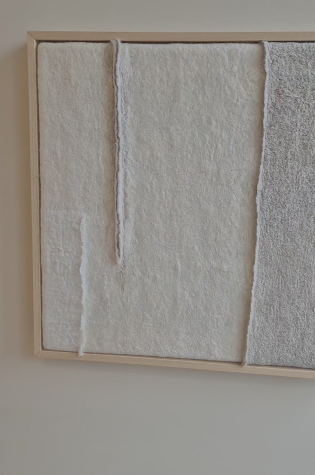 Een verstild wandobject van merinowol en natuurlijke vezels, waarin rust, nuance en zachte texturen samenkomen.